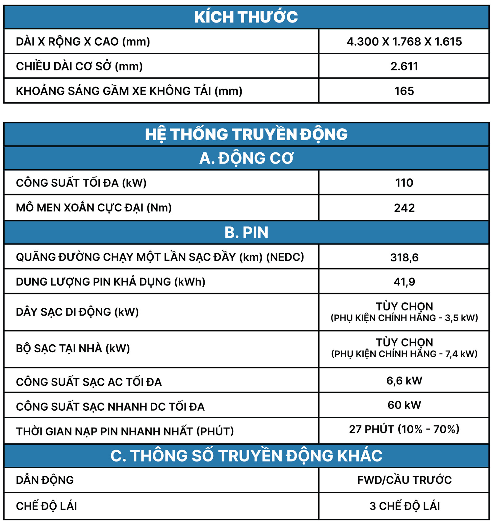 Thông số xe